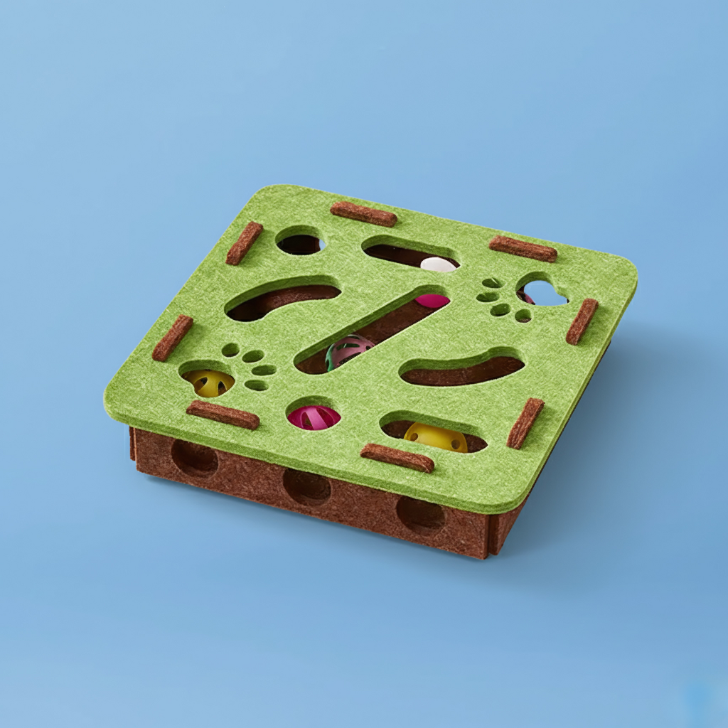 Keep your cat entertained and mentally stimulated with this Interactive Puzzle Maze Toy! Designed with soft felt material and fun peek-a-boo holes, it hides a bell ball inside to spark your cat’s hunting instincts. Perfect for relieving boredom, promoting exercise, and improving problem-solving skills.
