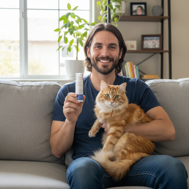 Lucas W.Verified BuyerFinally Relief for My Furry FriendMy cat had been uncomfortable and restless for weeks, and nothing seemed to help. This spray made a noticeable difference in just a few days. She is calmer, her fur looks healthier, and she seems much happier overall. I love that it’s easy to use and completely safe. I will definitely keep this as part of her routine.Vet Formulated pet spray Was this helpful? 0 0